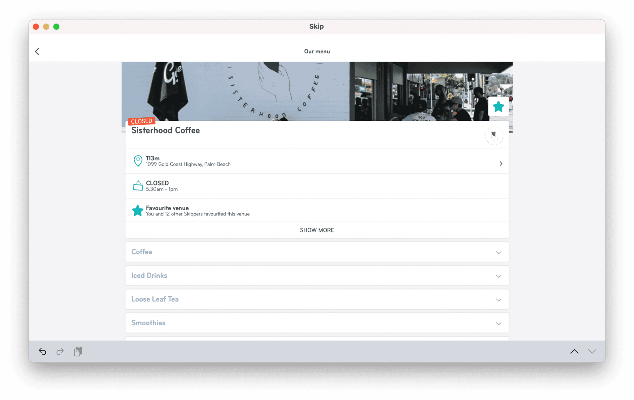 My local coffee shop’s coffee ordering and line skipping platform of choice, Skip, works a beaut.
