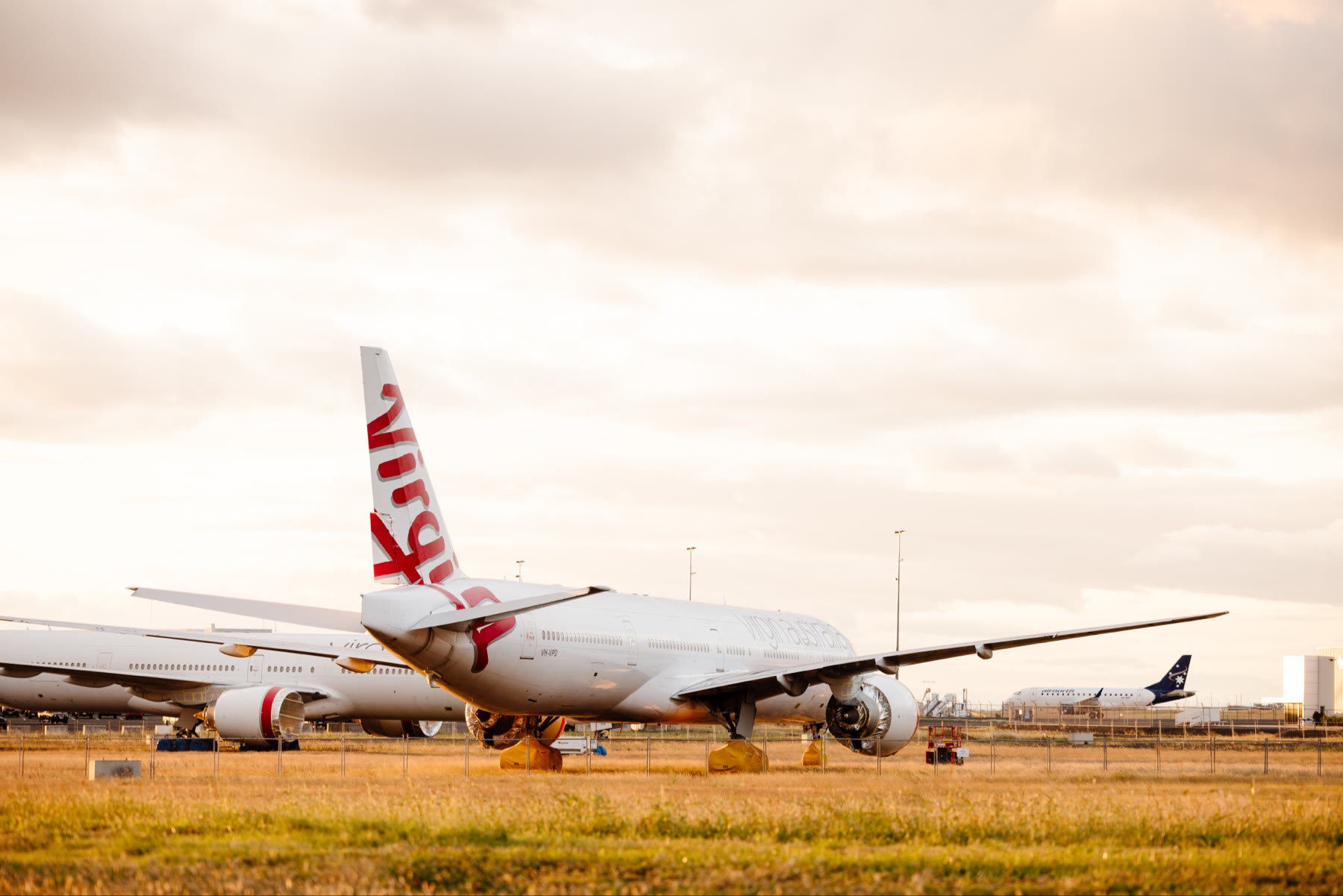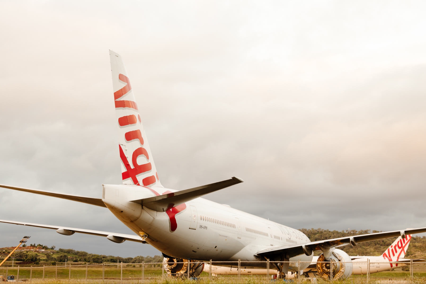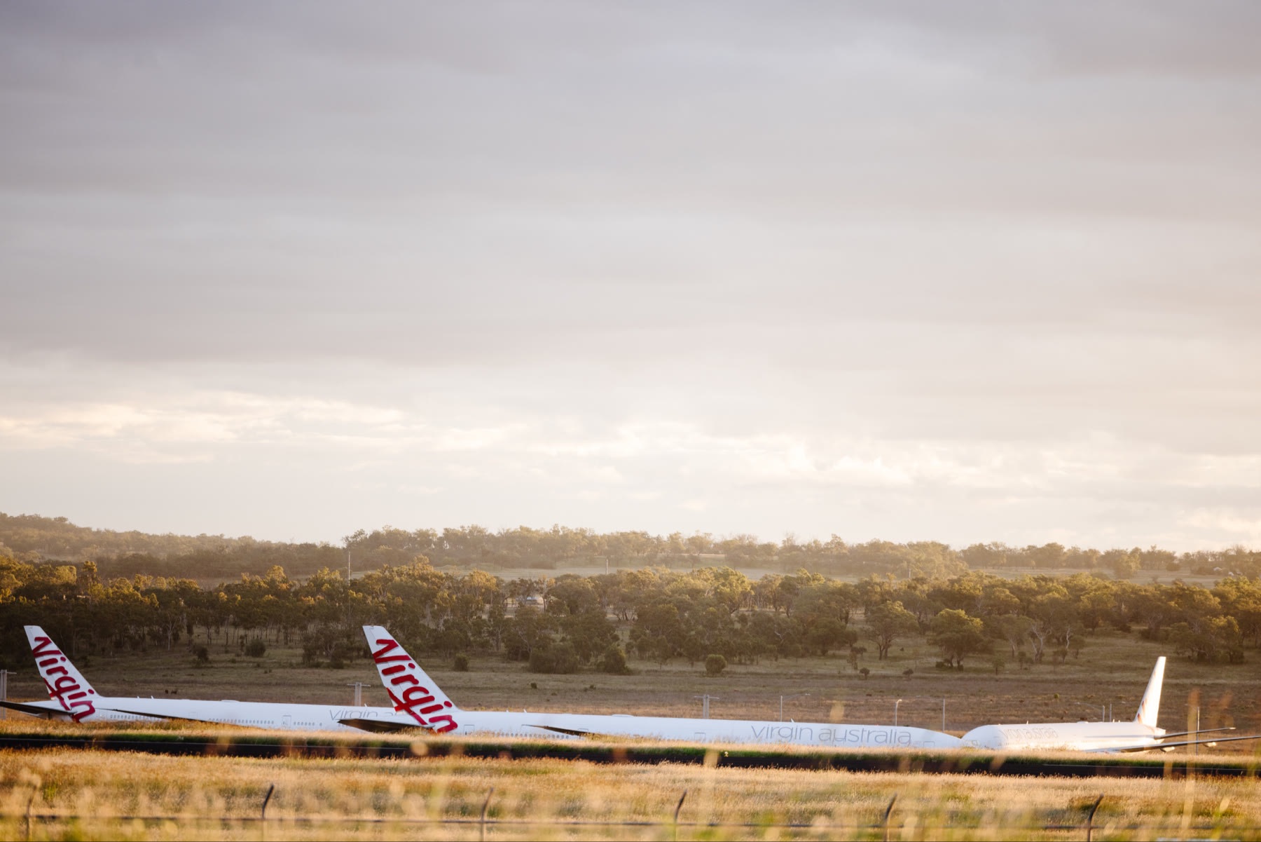 Former Virgin Australia Boeing 777-300ERs, VH-VPE, VH-VPD, VH-VPH, hanging out at Toowoomba’s Wellcamp Airport.