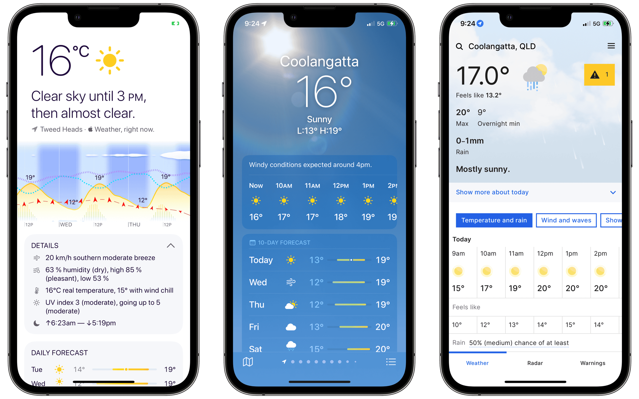 Australian weather data on the iOS 16 public beta doesn’t look to be any better than previous incarnations. The leftmost app is Weathergraph which is using the Apple Weather API. The middle app is Apple’s stock weather app and it’s weirdly still using The Weather Channel (USA). The right most app is the Australian Bureau of Meteorology app, the arguably one true source of Australian weather data.