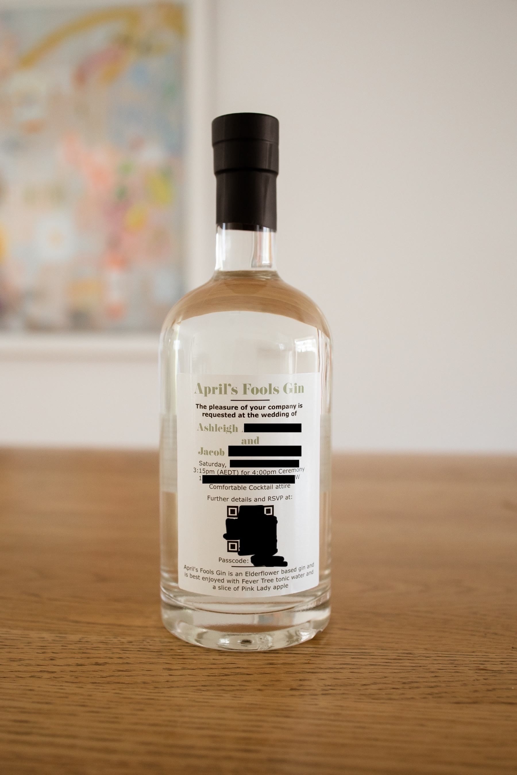 Get back to me when your wedding invite is a bottle of craft gin. This is an actual wedding I’m at in December.