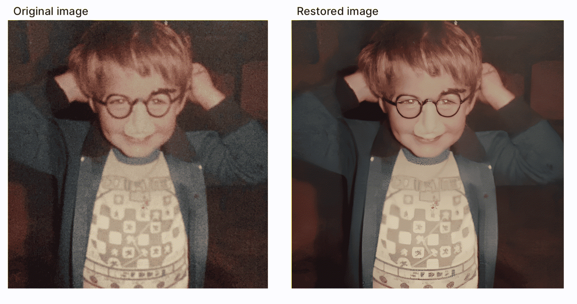 This web app on Baseten was recommended to me to restore old photos and as you might be able to see with this ancient photo of yours truly, it works a treat!