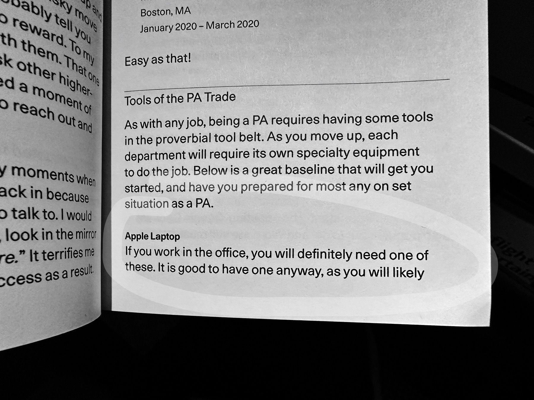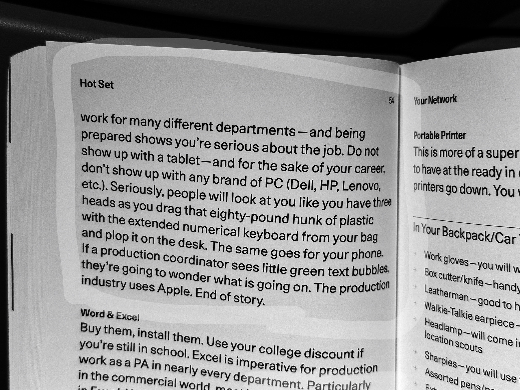 I thought readers of my blog might appreciate the book if they or people they knew aspired to work in film production (it's a great and personal read, even for me, an old man without film and TV aspirations), but also, they'd enjoy this excerpt about what technology you should own and be proficient in before you start as a production assistant.