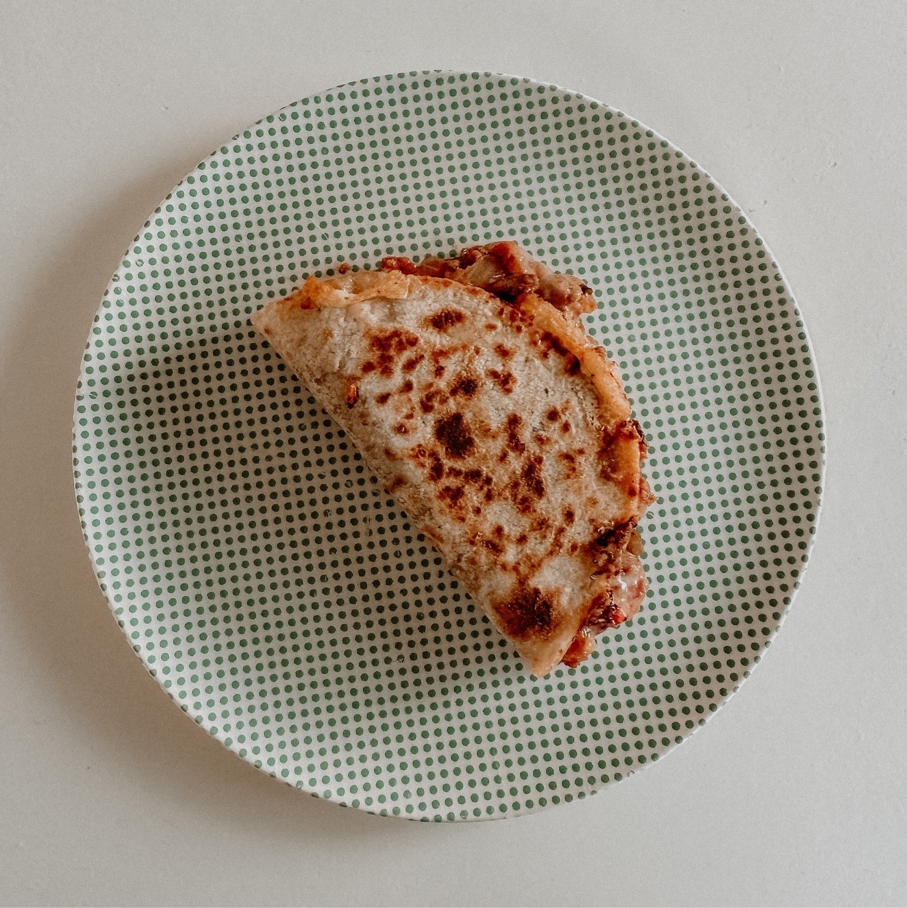 Help me name my new creation which I made for the kids for dinner tonight. It’s a quesadilla with leftover spaghetti bolognaise sauce and despite Luna’s objections, it’s great!