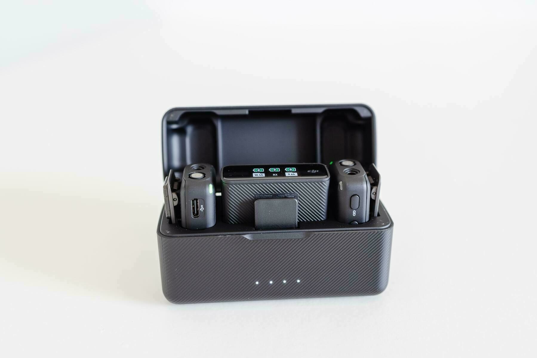 These are my DJI microphones, and as a travelling nerd I really appreciate how they've been engineered, all to stay within the little charging case.