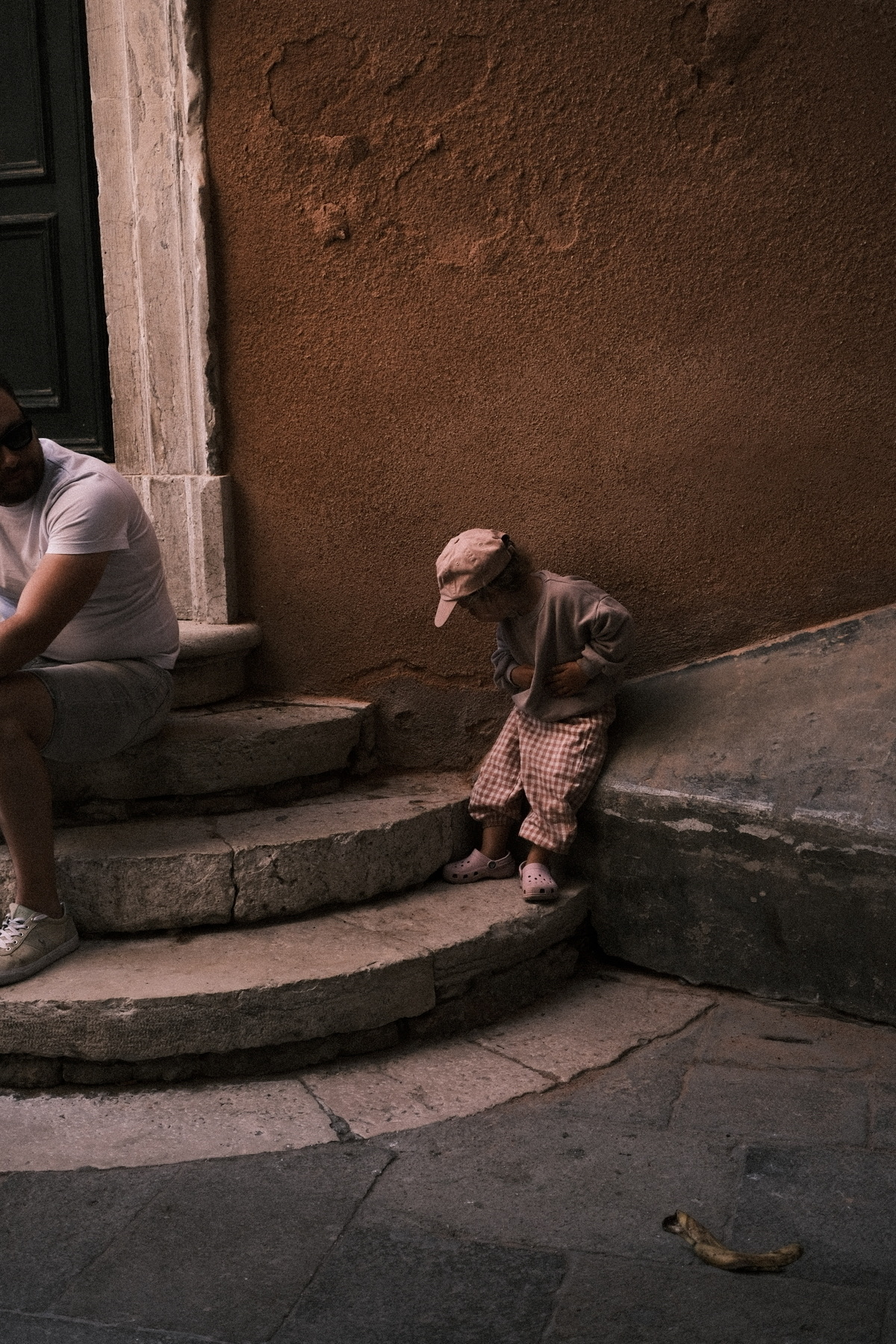 After riding a scooter across town to a store I walked upon a lady on the street bent over and attending to her monthly needs.
