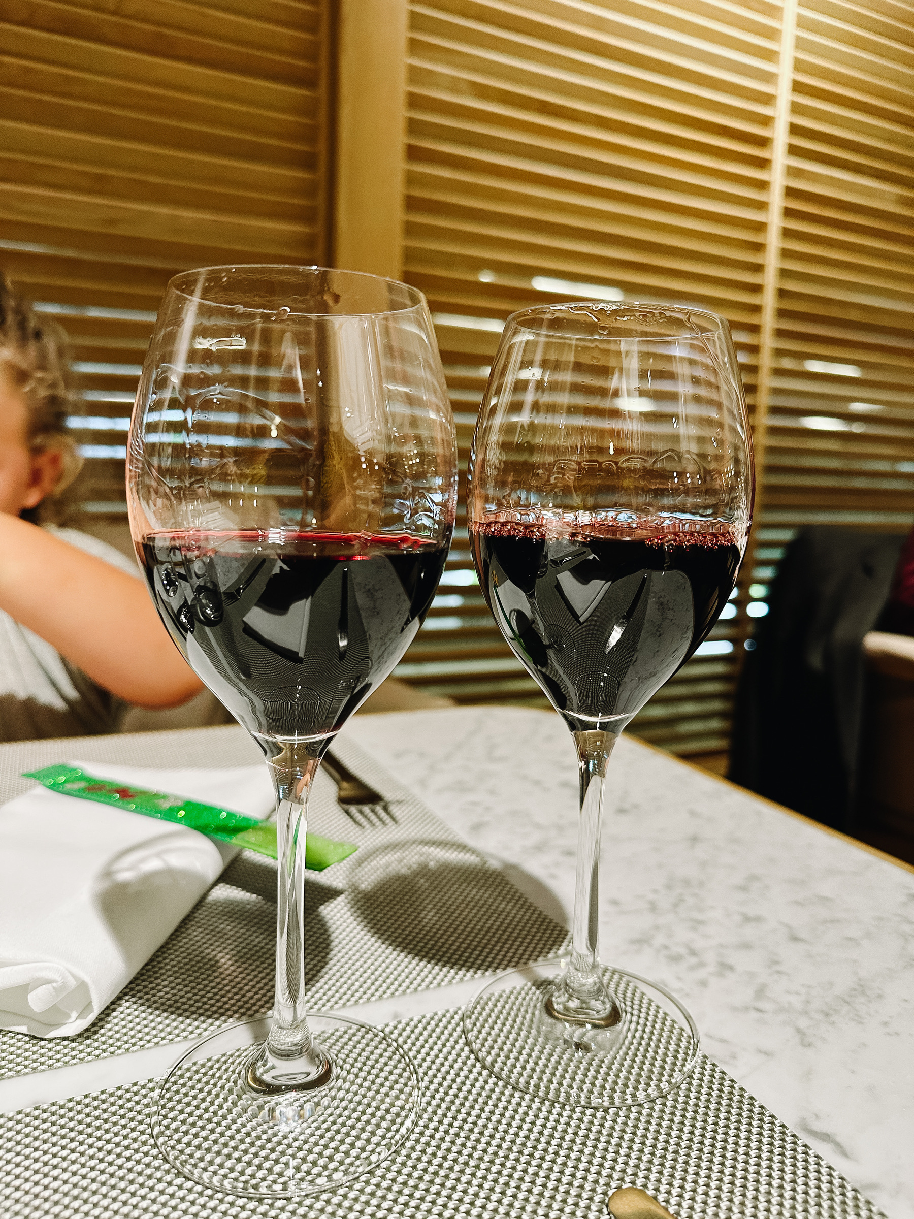 • I’m in the Qantas Singapore Lounge and the waiter poured me a glass of Shiraz, a 2020 from South Australia, on the left.
